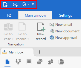 | When a new version of F2 is released, the menu items in the main, record, and case windows may be affected. This means that you may need to re-establish functions you have added to the "Quick access" toolbar. |